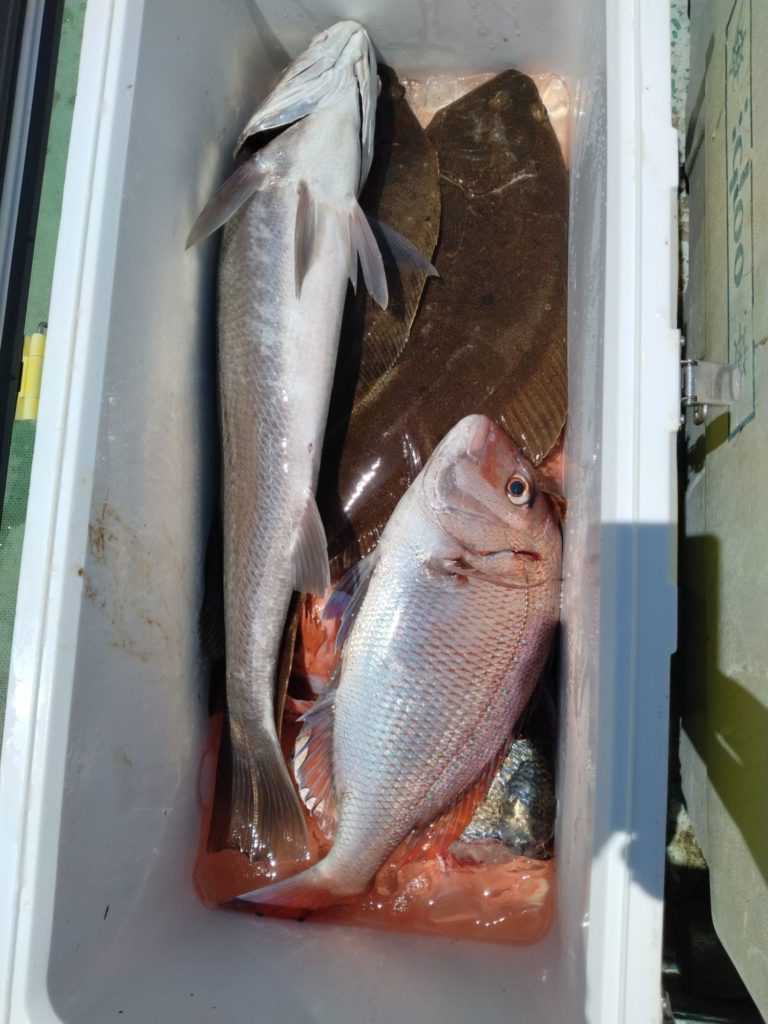 ヒラメ3匹、ニベ2匹、マダイ他。
